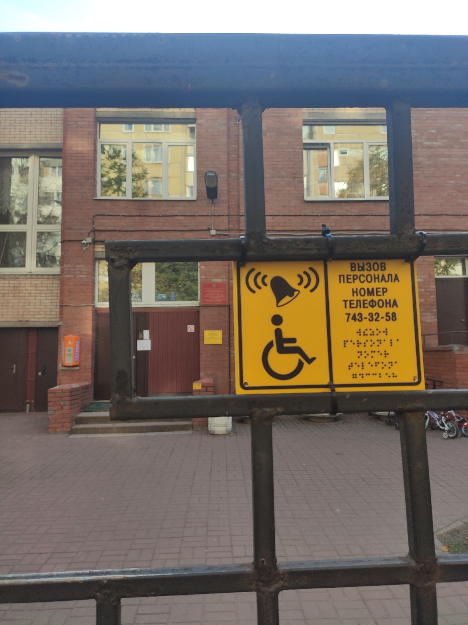 Перед выходом на территорию детского сада имеется табличка с указанием номера телефона для оказания помощи и вызова сопровождающего к месту предоставления услуги