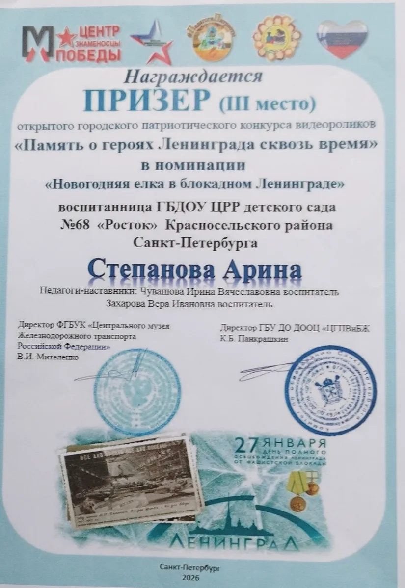 - Благодарственное письмо Администрации Красносельского района Санкт-Петербурга, 2025г
